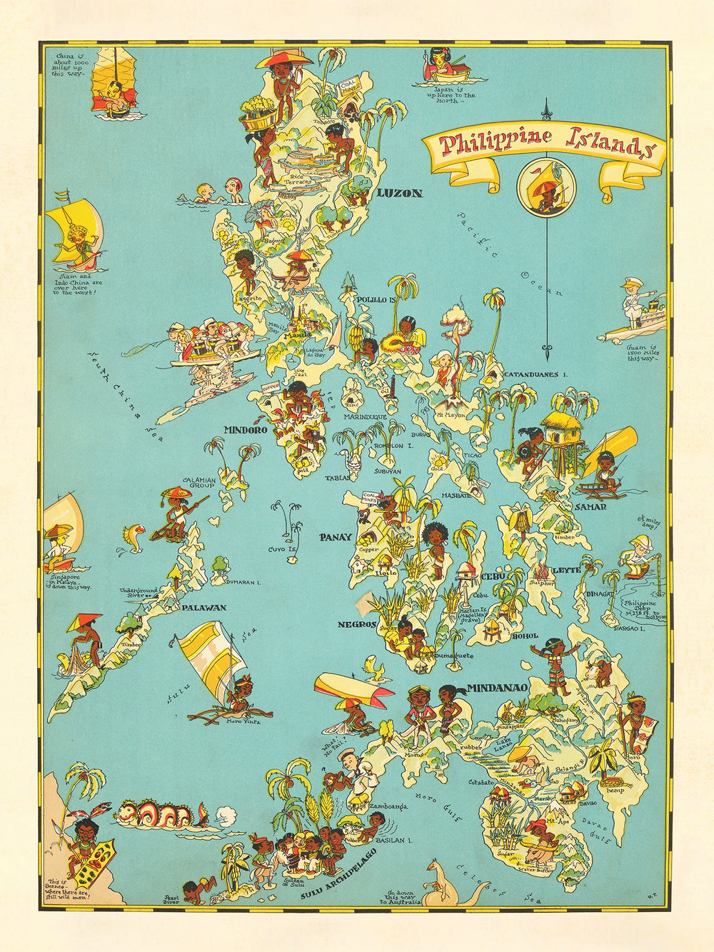 Mapa antiguo de Filipinas de Ruth Taylor White, 1935: Manila, Luzón, Samar, Mindanao y el archipiélago de Sulu