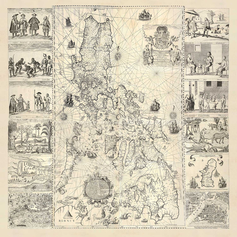 En la época en que se creó el mapa, Filipinas era una colonia española, lo que se refleja en la representación de los fuertes y asentamientos españoles. También incluye monumentos clave como iglesias y monasterios, que eran importantes centros de vida religiosa y cultural. El mapa se creó en una época de importantes cambios políticos y sociales en Filipinas, como el ascenso de los Ilustrados, un grupo de filipinos cultos que buscaban mayor autonomía y representación política.