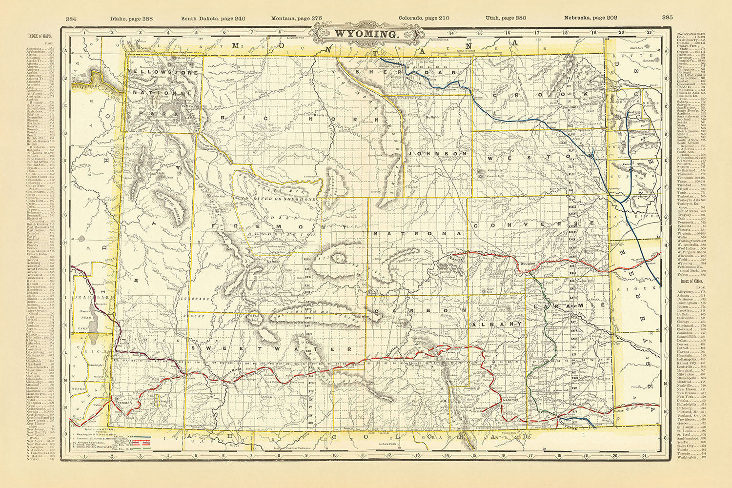 Uno de los mapas más grandes y detallados de Wyoming de la época.