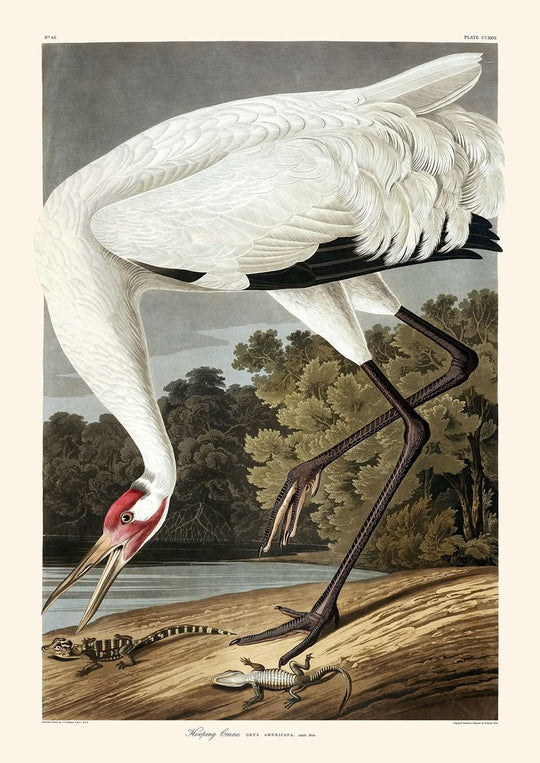 Hooping Crane de John James Audubon, publicada por primera vez en 1827, es una cautivadora ilustración de aves de la famosa colección Aves de América de Audubon. Esta exquisita obra de arte presenta una vívida narración del cambio de estaciones y el delicado equilibrio de la naturaleza, ilustrada por la mano magistral de Audubon.