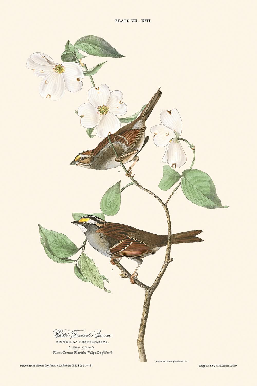 Gorrión de garganta blanca, de John James Audubon, 1827