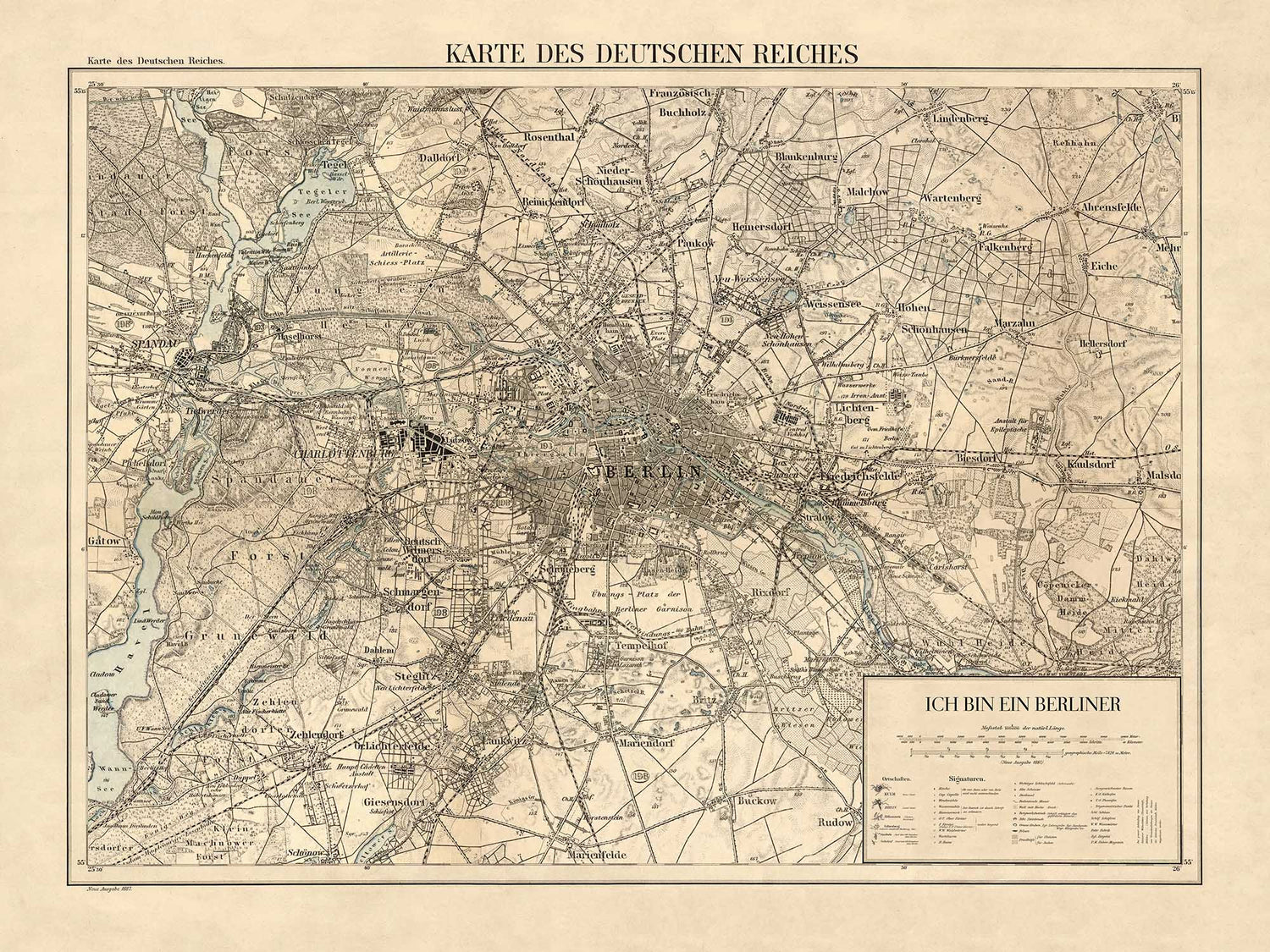Tu mapa será hecho a mano por encargo a partir de mapas reales del Reichsamt für Landesaufnahme (Oficina Estatal de Catastro) que fueron publicados originalmente en las décadas de 1880 y 90.