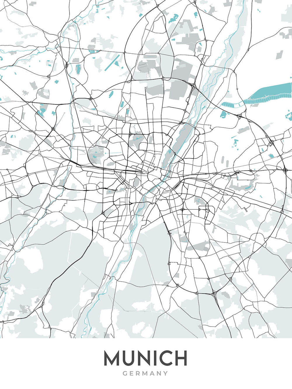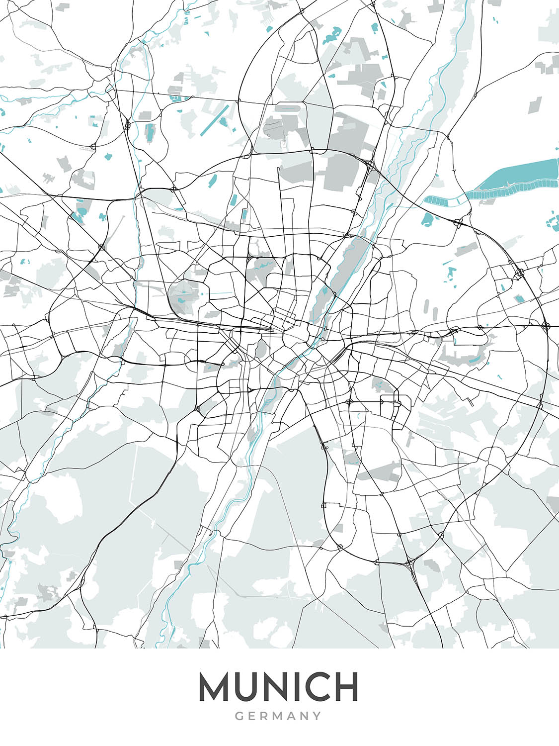 El mapa está impreso en papel de alta calidad y está disponible en varios tamaños. También está disponible como descarga digital, para que pueda imprimirlo en casa o en una imprenta local. Tanto si eres local de Múnich como si simplemente eres un visitante, este mapa es imprescindible para cualquiera que ame esta ciudad.