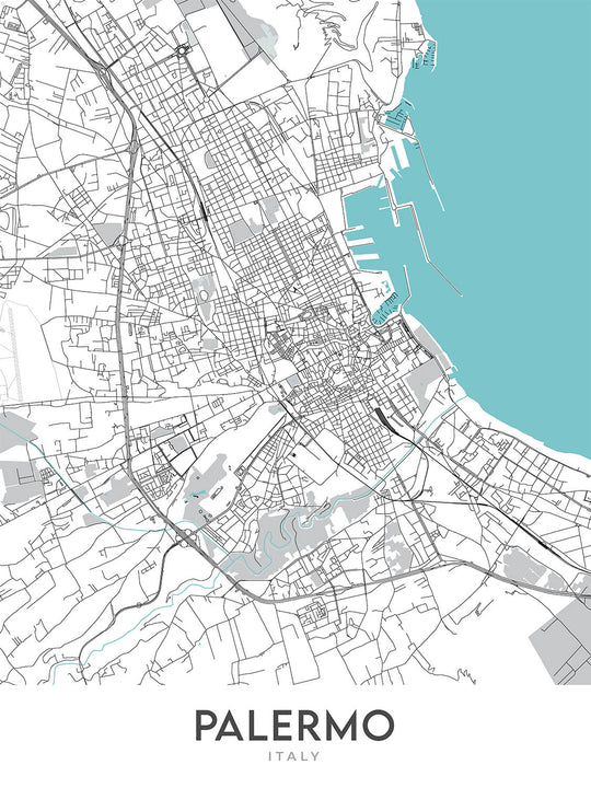 Este mapa de Palermo ofrece una vista moderna y detallada de la ciudad, capturando su vibrante energía y su rica historia. El mapa se centra en la zona central de Palermo, abarcando una amplia gama de barrios, desde los históricos distritos de Albergheria y Kalsa hasta las elegantes zonas de Politeama y Tribunali-Castellammare. También incluye los lugares emblemáticos que hacen de Palermo un destino de visita obligada, como la majestuosa Catedral de Palermo, el opulento Palazzo dei Normanni y el gran Teatro Massimo.