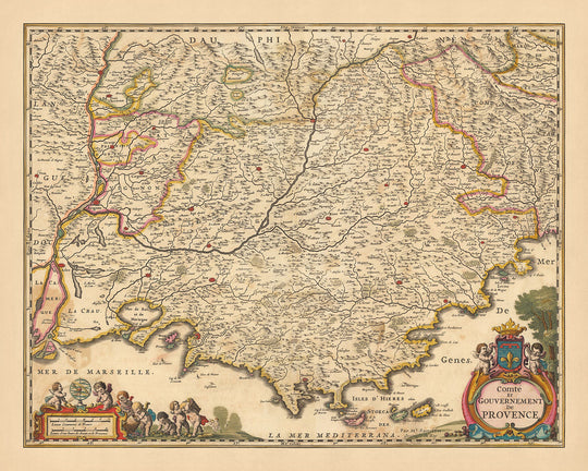 Este mapa es más que una simple representación de fronteras geográficas y políticas; es una ventana al pasado, un reflejo de la evolución histórica y cultural de Provenza. Tanto si es un entusiasta de la historia, un amante del arte o un conocedor del lujo, el mapa 'Comte et gouvernement de Provence' es una pieza única que añadirá un toque de elegancia y sofisticación a su colección. No es sólo un mapa, sino un testimonio del encanto perdurable de Provenza, una región que sigue cautivando e inspirando.