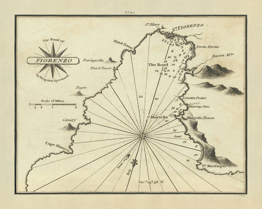Más allá de su utilidad para la navegación, "El Camino de San Fiorenzo" destaca como una obra de arte. La carta está finamente grabada, un testimonio de los altos estándares de artesanía en los círculos cartográficos de Londres a principios del siglo XIX. Cada línea y letras, posiblemente grabadas por John Stephenson, reflejan una meticulosa atención al detalle que eleva este gráfico a un deleite visual. Esta excelencia artística, combinada con la rareza y el contexto histórico de la carta, la convierte en una posesión preciada tanto para coleccionistas como para historiadores.