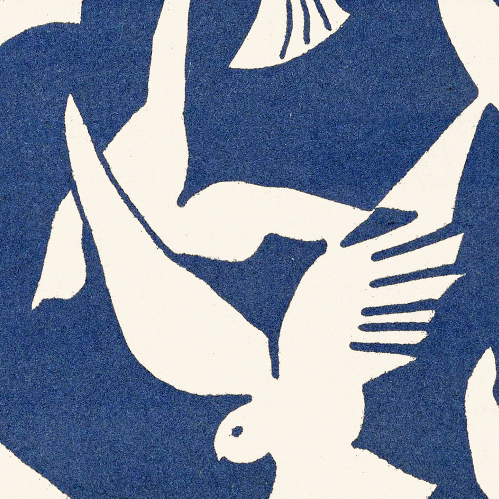 Pigeons in White & Blue by William Morris is a restored, high-quality print of a late-period Morris design dating to 1928. Most likely conceived as a wallpaper pattern—and equally at home as a carpet, curtain or other textile—the motif distills a flock of pigeons into elegant, repeating silhouettes. The result is a timeless surface design that merges Morris’s love of nature with the simplified, graphic sensibility that came to prominence in the early 20th century.