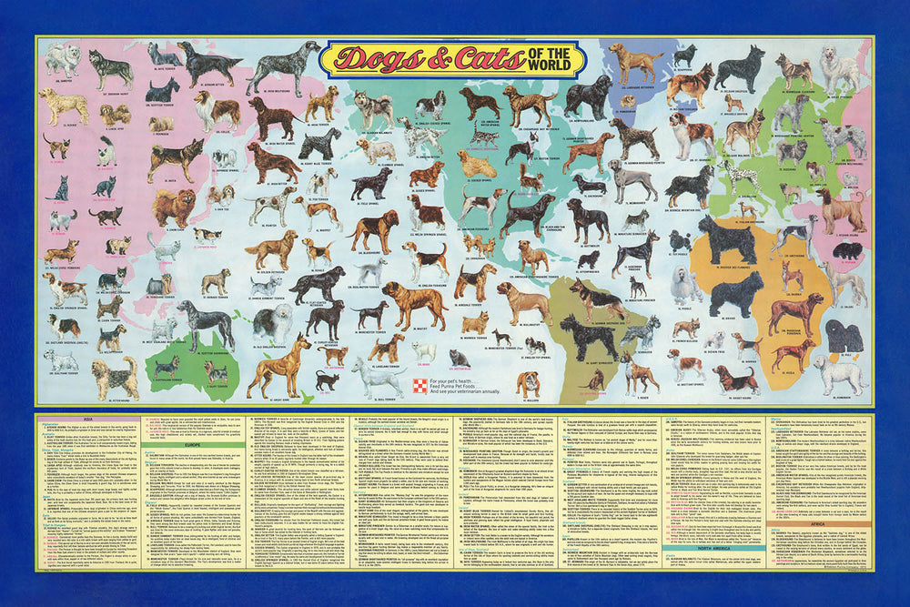 Mapa Mundial de Perros y Gatos Viejos de Purina, 1973: Razas Globales, Cultura de Mascotas de los Años 70