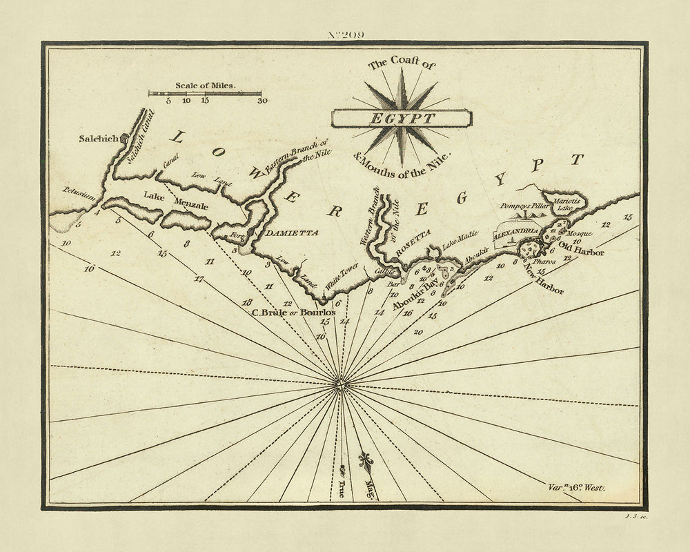 Poseer "La Costa de Egipto y las Boccas del Nilo" es como poseer un pedazo de historia. Proporciona una perspectiva única sobre el paisaje geográfico y cultural de Egipto a principios de 1800, reflejada a través de la lente de los intereses navales británicos y la experiencia cartográfica. Este mapa no es solo una ayuda de navegación, sino un documento histórico que ofrece información sobre la importancia geopolítica de las regiones costeras de Egipto durante una era crucial en la historia tanto egipcia como mundial.