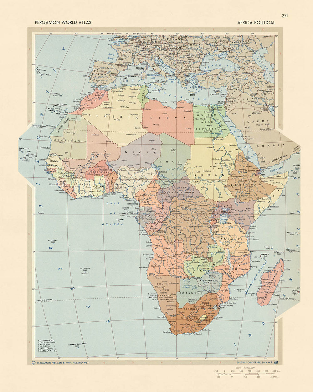 Antigua Mapa Político de África, 1967: Atlas del Clima Geopolítico Continental