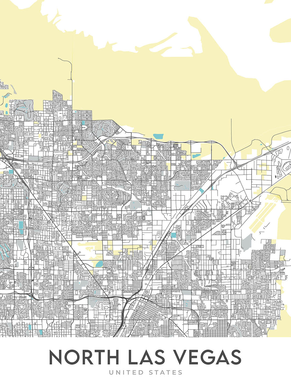 Mapa moderno de la ciudad de North Las Vegas, NV: Aliante, Eldorado, I-15, I-215, Las Vegas Blvd
