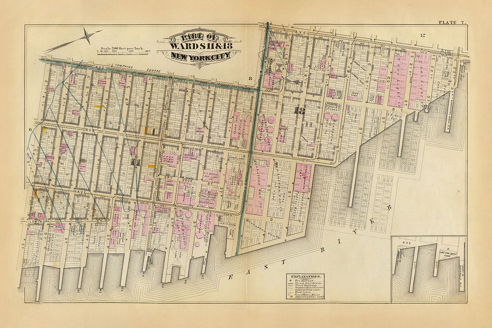 Si bien el atlas del que procede este mapa fue elaborado con un alto grado de precisión, es fundamental señalar que representa una ciudad de hace más de un siglo. Es posible que los edificios, calles y puntos de referencia hayan cambiado, desaparecido o existido desde 1879. Como tal, este mapa debe apreciarse como un documento histórico, que captura la esencia del Lower East Side de la ciudad de Nueva York tal como era, no como es. .