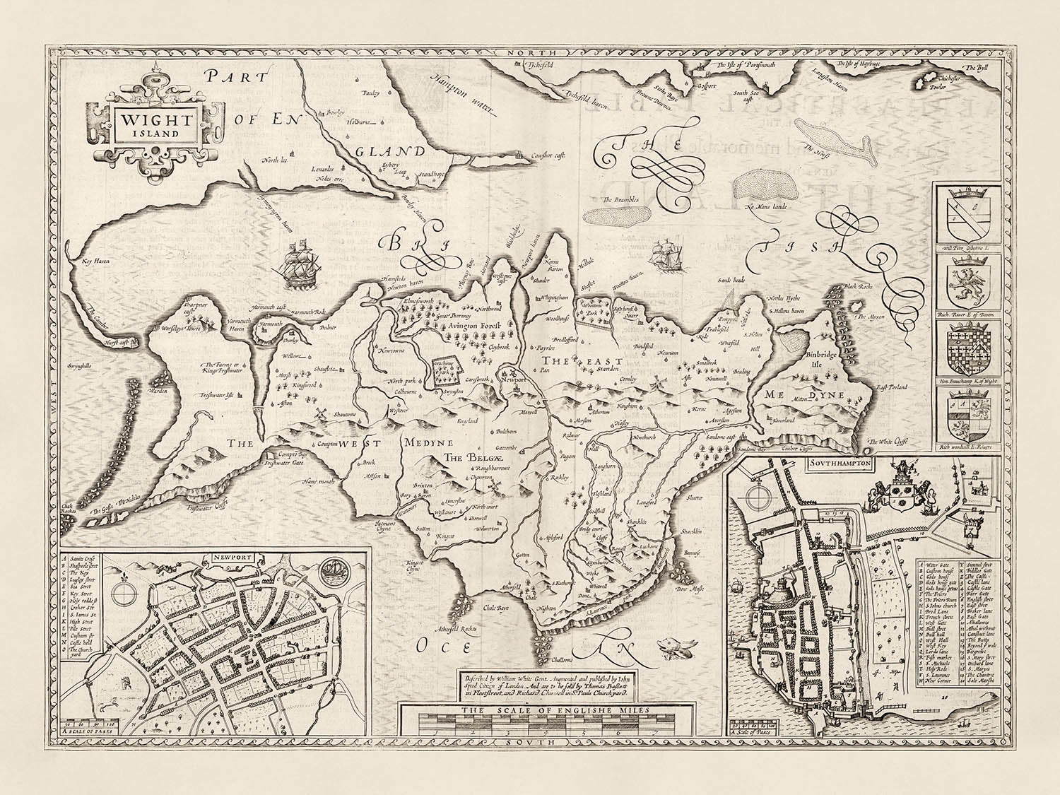 Muchos de los pueblos, aldeas y ciudades de la Isla de Wight ya son visibles en este mapa.