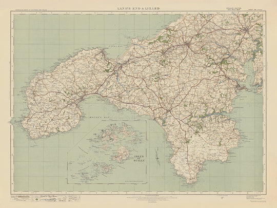 Mapa antiguo de Ordnance Survey: Hoja 146 Lands End & Lizard, 1919-1926: Truro, Falmouth, St Ives, Penzance, Helston, St Michael's Mount, Lizard Point