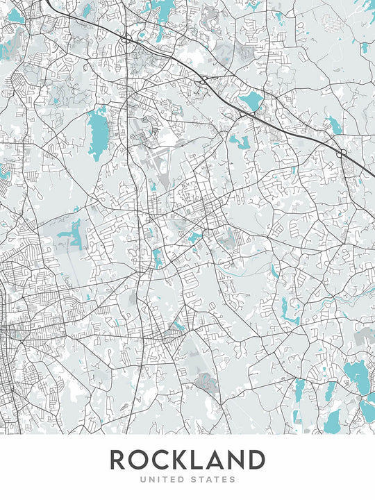 Mapa moderno de la ciudad de Rockland, MA: Hanover, Union Street, Summer Street, Liberty Street, Reed Street