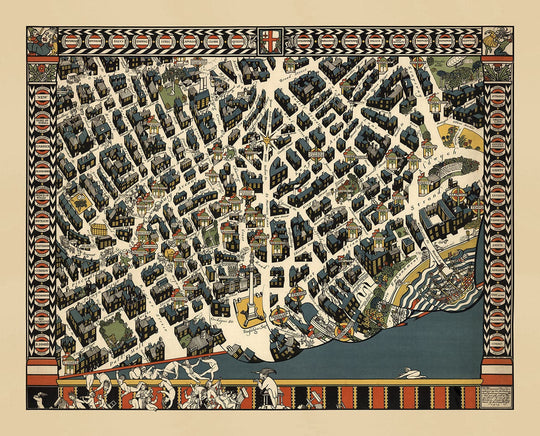 Mapa antiguo de Londres West End, 1915 por Max Gill: "Theatreland" Mapa de tubos subterráneos