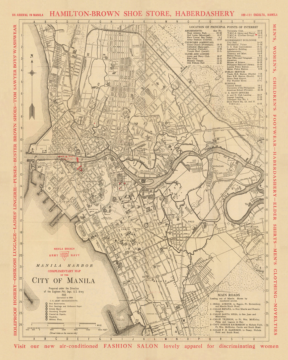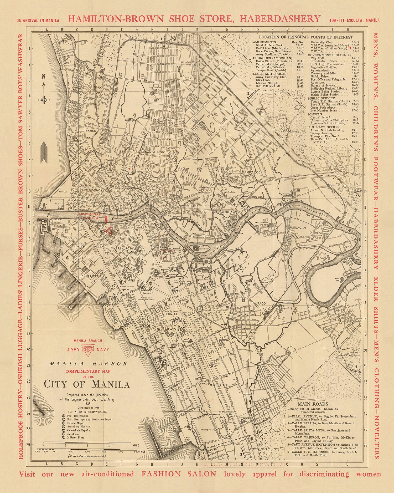 Mapa antiguo de Manila por YMCA y ejército de EE. UU., 1938: Intramuros, Ermita, Quiapo, San Miguel, Binondo, Pandacan