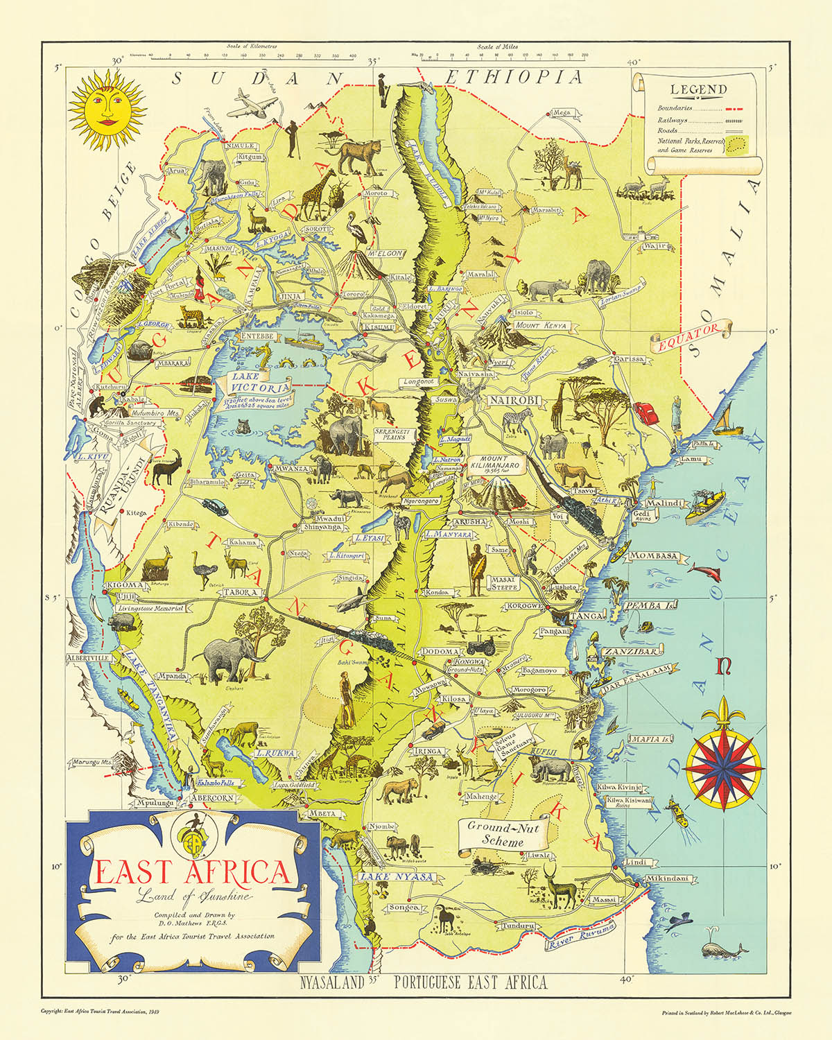 - Mapeador o editor: DO Mathews, miembro de la Royal Geographical Society, para la Asociación de Viajes Turísticos de África Oriental