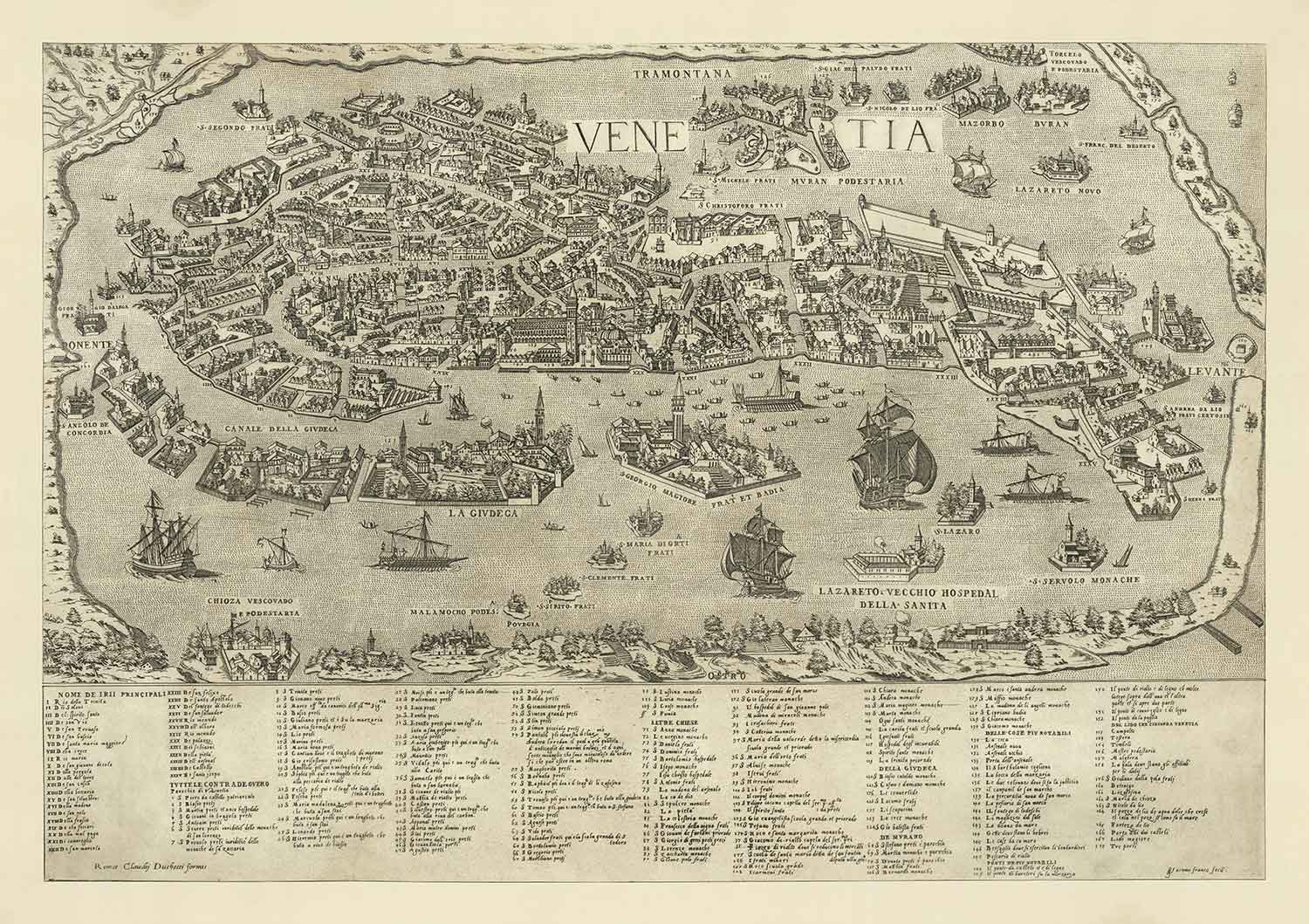 Esta maravillosa antigua mapa de Venecia fue publicada originalmente en 1570. Fue creada por Claudio Duchetti.