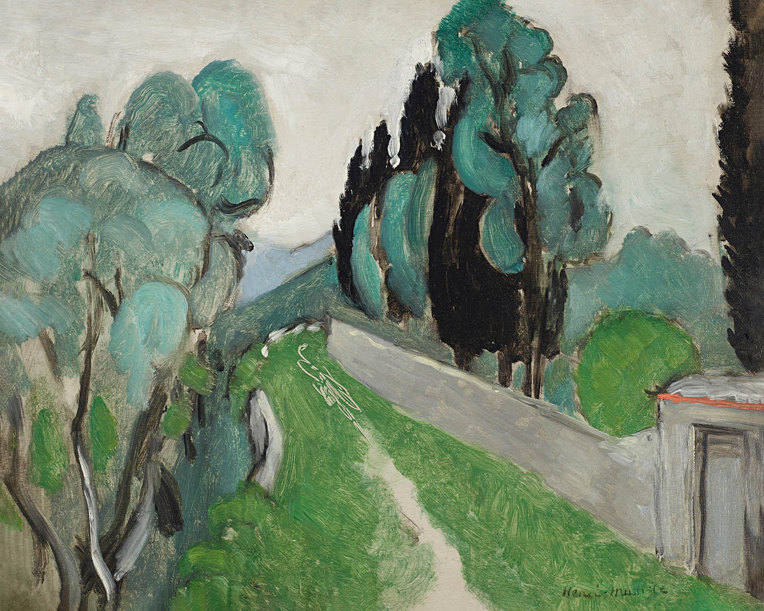 Paisaje con cipreses y olivos en los alrededores de Niza (Landscape with cypresses and olive trees near Nice) de Henri Matisse, 1918