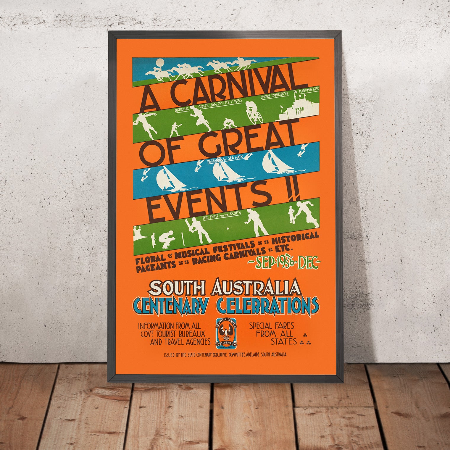 South Australia Travel Poster: A Carnival of Great Events by Anonymous, 1936