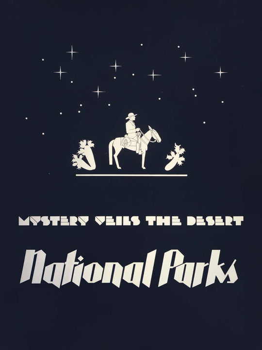This particular poster is notable for how it distills the desert’s allure into a few unforgettable symbols. The cowboy on horseback embodies the spirit of exploration, while the phrase “Mystery Veils the Desert” casts the Southwest’s parks—think wide-open canyons, cactus gardens, and night skies dense with constellations—as places of wonder. It’s an image that spoke to 1930s travelers hungry for adventure and continues to resonate with hikers, road-trippers, and stargazers who’ve fallen for the desert’s quiet drama.