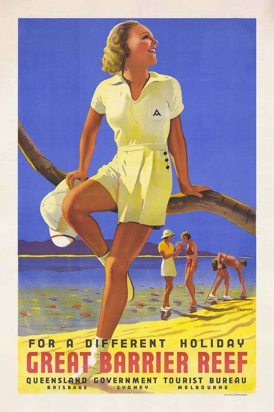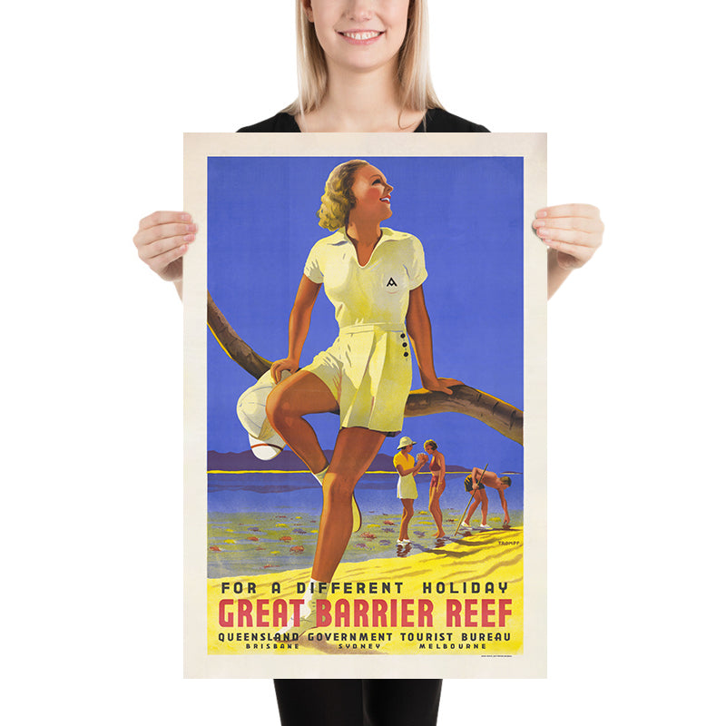 Great Barrier Reef Travel Poster: For a Different Holiday by Percy Trompf, 1939