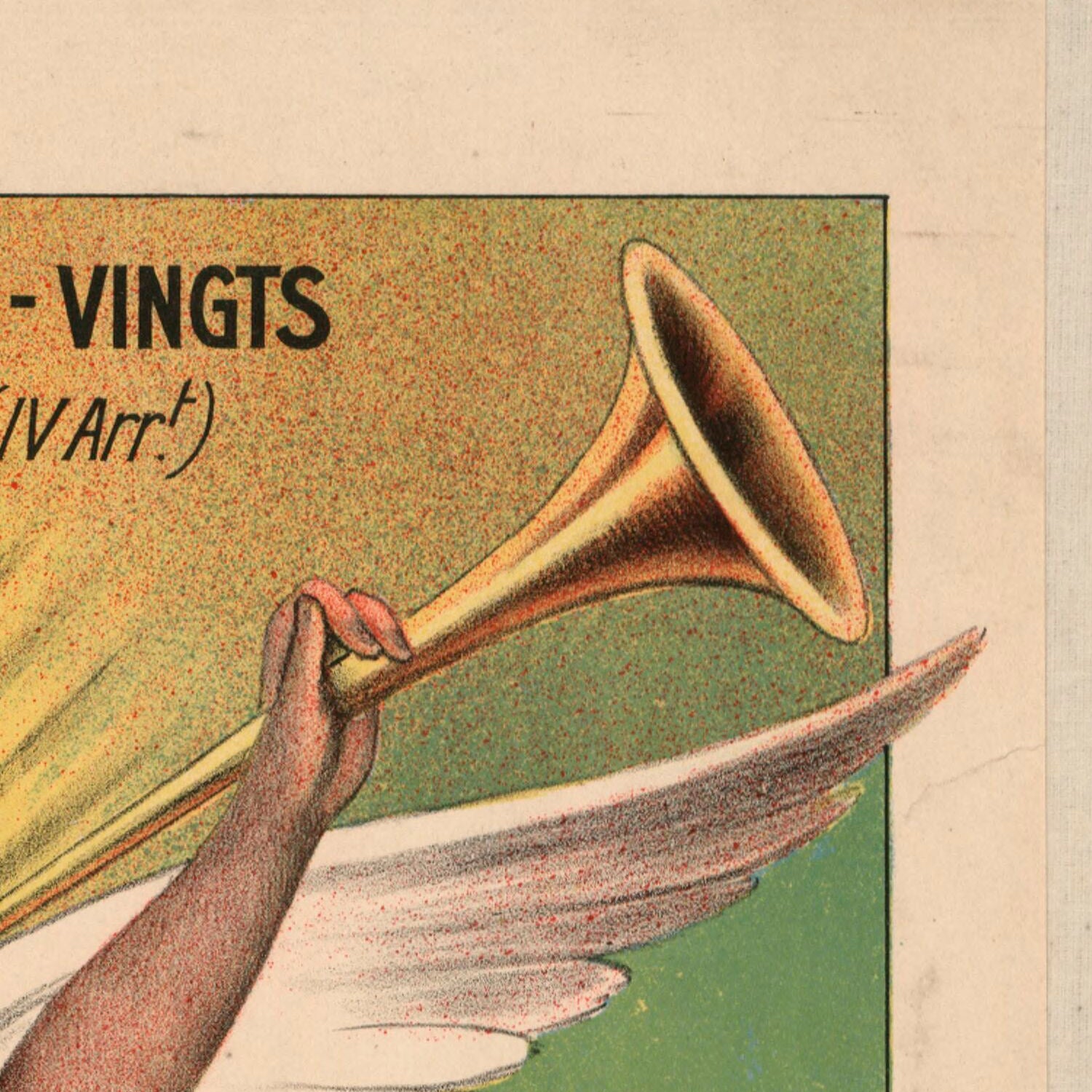 Artistic highlights: The lithographic technique yields saturated greens for parks and fields, while warm yellows and reds lift roofs, garments, and headline lettering off the page. Strong, angular lines trace roads and plot boundaries, contrasting with the soft, organic silhouettes of trees and the angel’s billowing robe. This play of geometry and grace is a hallmark of the period’s best poster art, where allegorical figures symbolized progress and civic pride. The result is a striking statement piece—a fluent mix of typography, map‑like planning, and fine illustration—equally at home in contemporary, eclectic, or vintage interiors.