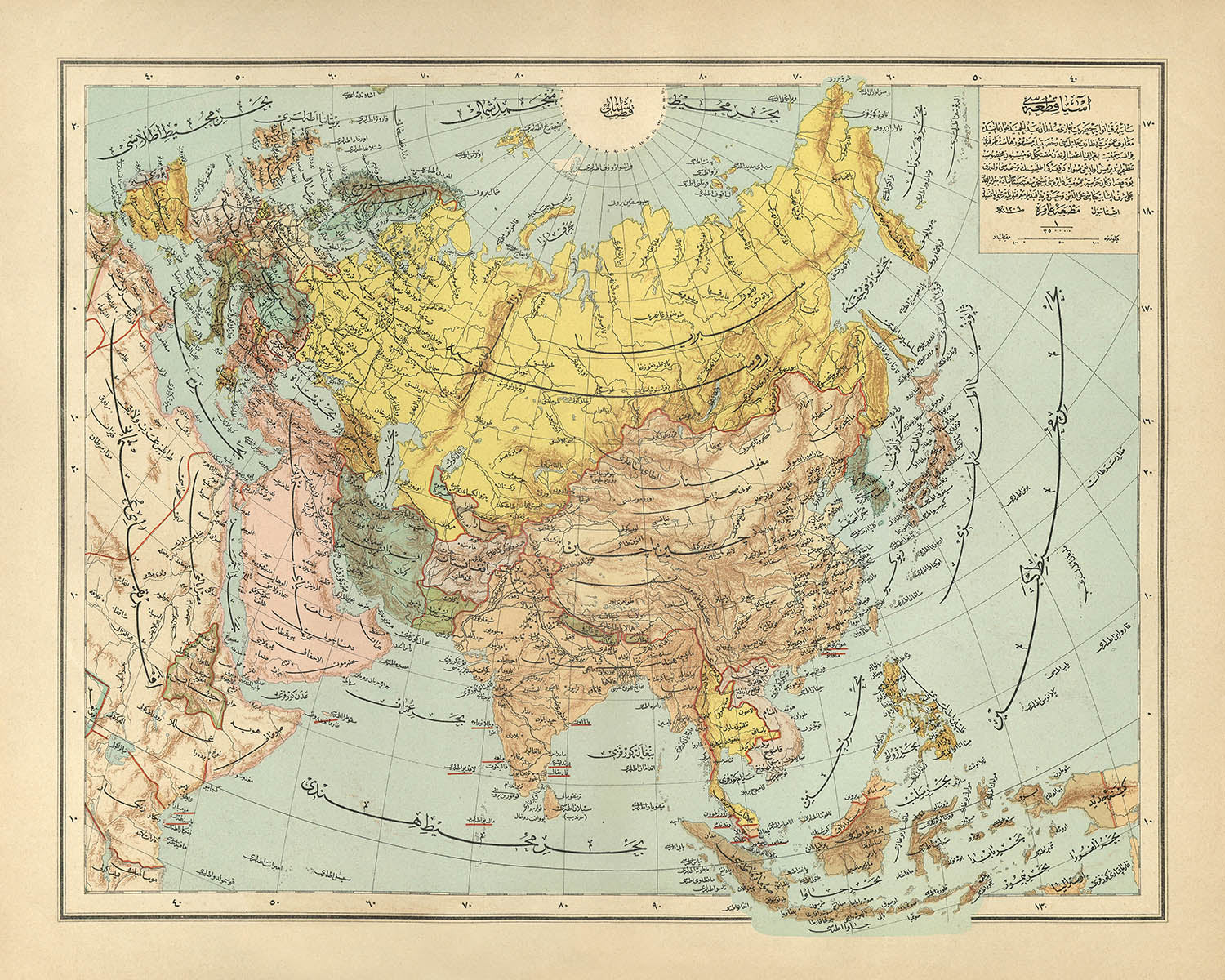 Antigua mapa árabe otomano de Asia por Eşref, 1893