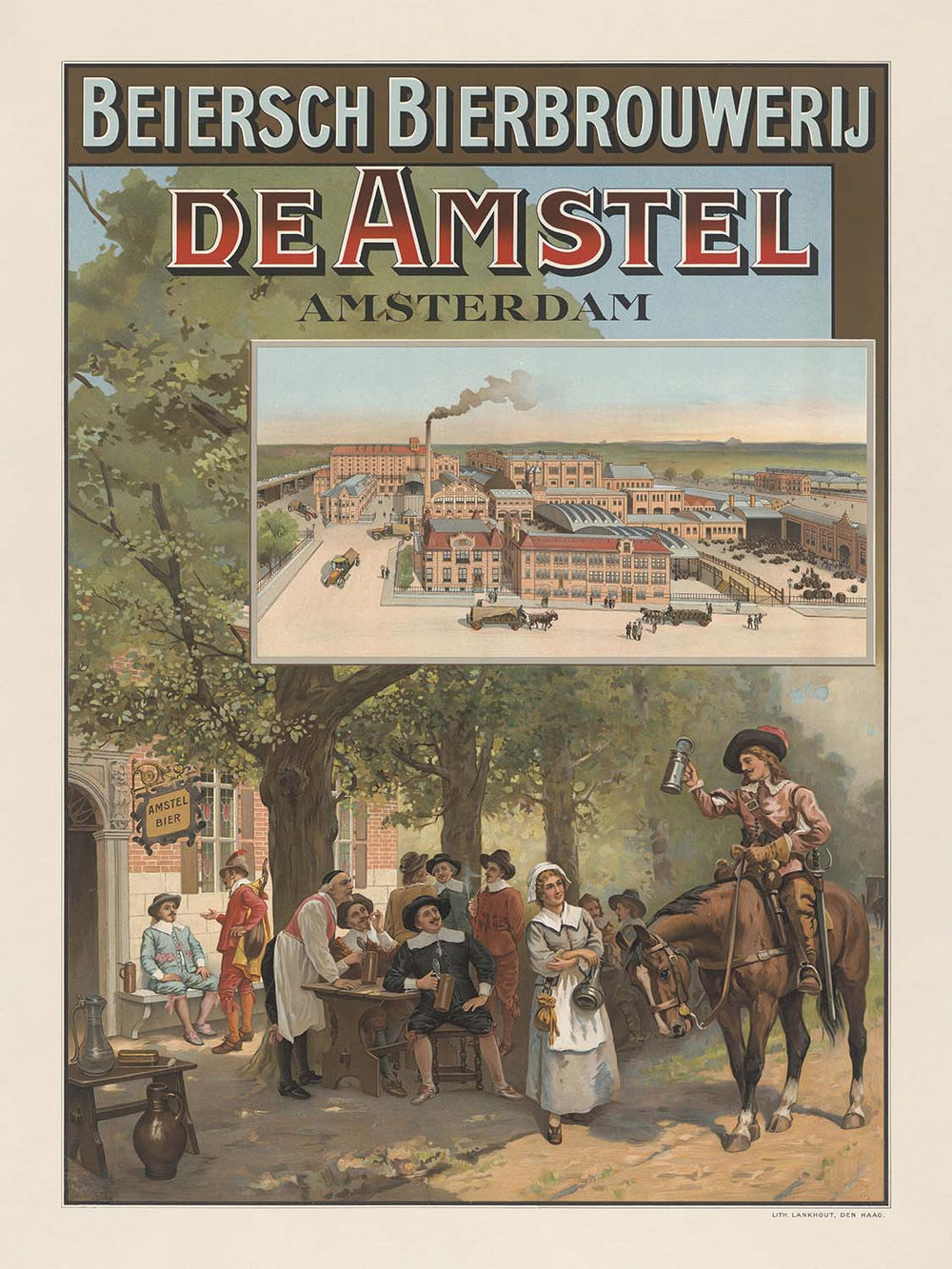 Amsterdam Travel Poster: Beiersch Bierbrouwerij De Amstel, 1910