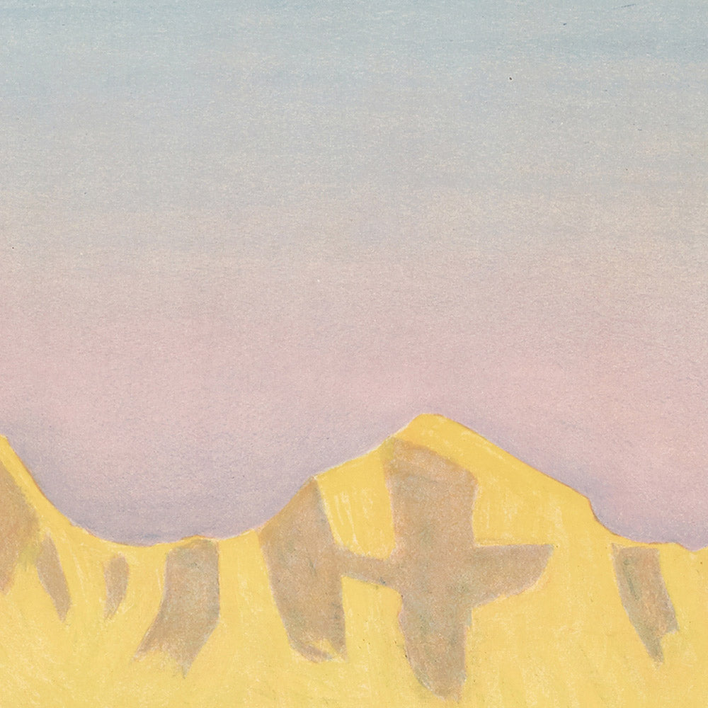 The subject is quintessential Bern: the world-famous Bellevue Palace and the Grandhotel Bernerhof, symbols of cosmopolitan hospitality steps from the Aare and the parliament buildings. Cardinaux evokes that privileged vantage point toward the Bernese Alps—almost certainly the Jungfrau region’s triumvirate of the Eiger, Mönch, and Jungfrau—glowing in evening light. It’s an image of arrival and outlook, evoking glamorous train journeys and grand hotel terraces.