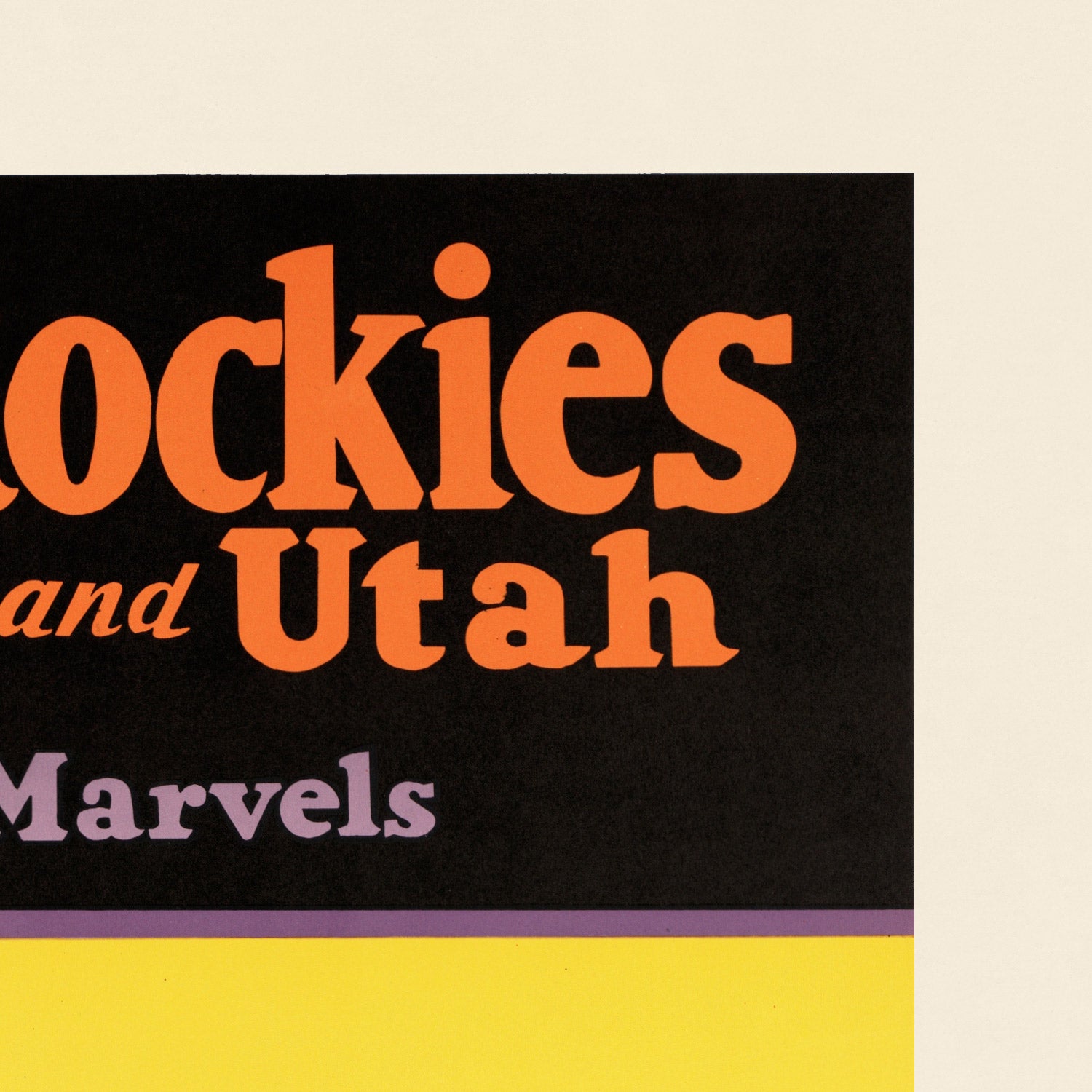 Why this subject matters: The Colorado Rockies, the Black Hills, and the landscapes of Utah represent some of the most iconic terrain in North America—alpine cirques and meadows, cathedral-like granite spires, and sandstone canyons carved into sculptural forms. Railroads helped make these vistas accessible to travelers, shaping how generations first encountered the American West. This poster captures that moment of invitation and possibility, the promise that a single ticket could carry you from foothills to snowline, from pine forest to red rock and back again.