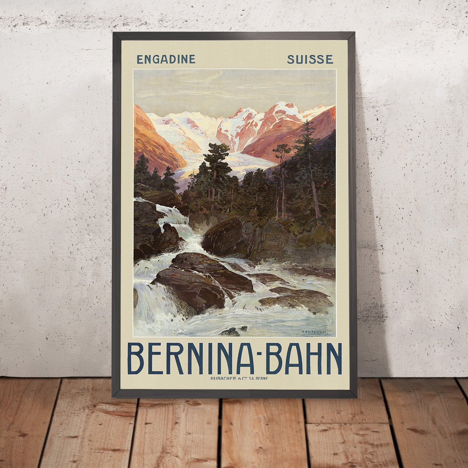 Engadin, Switzerland Travel Poster: Bernina-Bahn by Anton Reckziegel, 1908