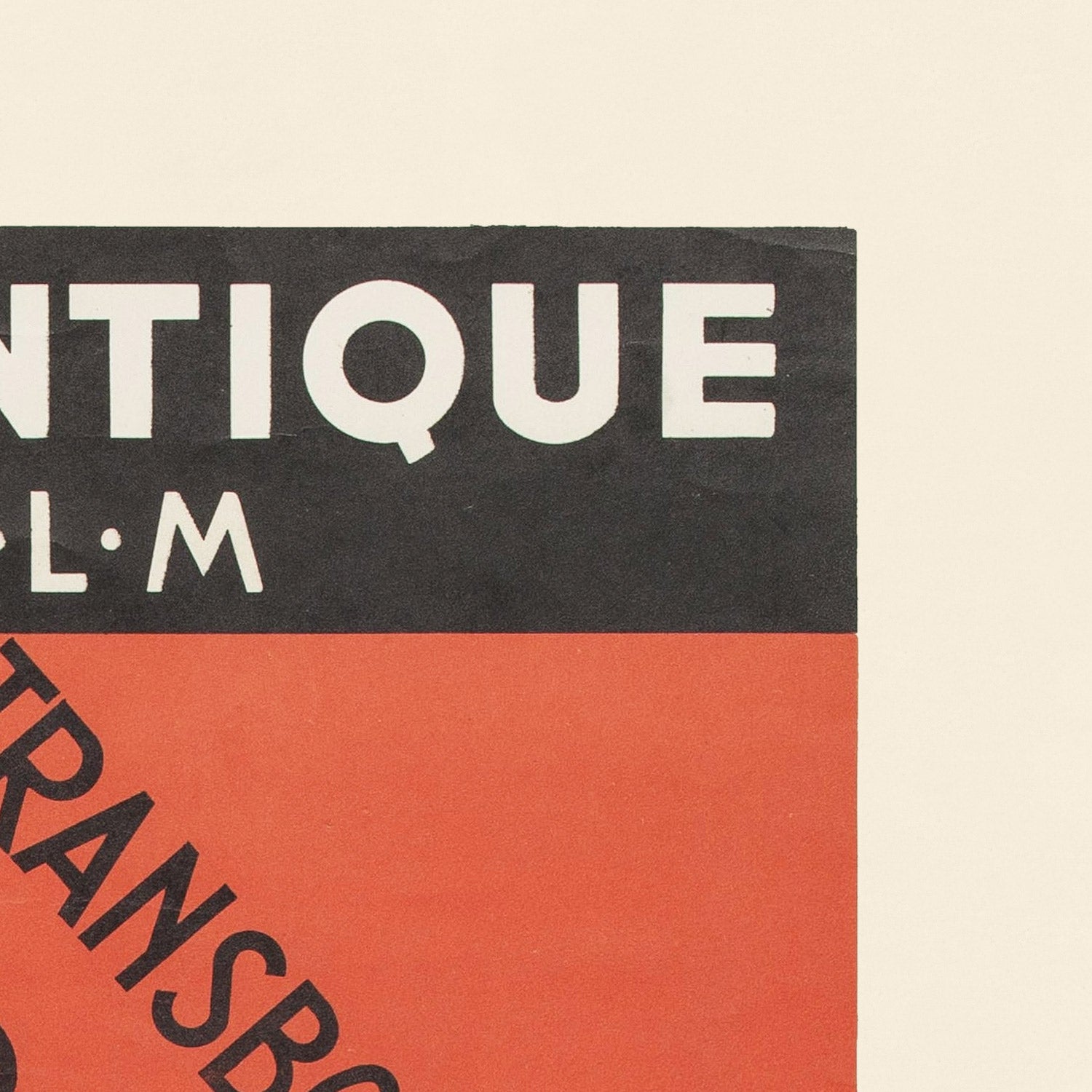 About the makers: the French Line (Compagnie Générale Transatlantique) was France’s storied steamship company—famed for its elegant liners and impeccable service—while PLM (Paris–Lyon–Méditerranée) was the railway that connected Paris with the southeast and the Mediterranean. Together they cultivated a sophisticated visual identity through posters like this one, commissioning talented designers to symbolize modern travel with bold geometry, streamlined forms, and impeccable typography. Even when the artist’s name is lost to history, the house style is unmistakably French and impeccably Art Deco.
