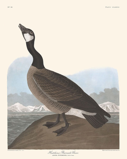 El ganso percebe de Hutchins se destaca por su importancia histórica y científica; registrado como Anser Hutchinsii, este pájaro ocupa un lugar especial en los registros ornitológicos con sus rasgos y hábitats bien documentados. La representación de Audubon ofrece a los entusiastas de las aves y a los coleccionistas de arte por igual una visión vívida de una especie que alguna vez fue un misterio para los primeros exploradores norteamericanos.