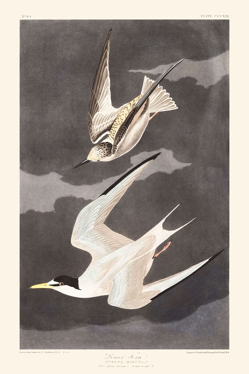 Charrán chico, publicada por primera vez en 1827, es una exquisita ilustración de aves de la famosa serie The Birds of America de John James Audubon. Esta obra de arte captura vívidamente las características delicadas y elegantes del charrán chico, lo que demuestra la maestría de Audubon a la hora de representar la belleza aviar.