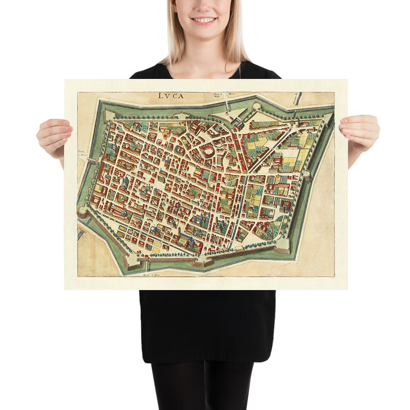 Matthäus Merian—one of the 17th century’s most influential engravers and cartographers—brings his hallmark precision to this Italian jewel. Celebrated for his city views and atlases, he unites empirical survey with refined artistry: crisp linework, balanced composition, and judicious use of color to clarify hierarchies of wall, street, and square. In Lucca, Tuscany, he captures a sovereign city whose strength in trade and governance was matched by its architectural poise. For historians, the map is a time-stamped ledger of early modern urbanism; for collectors, it is a tour de force of Renaissance geometry made legible. It remains a notably instructive city map—revealing, at a glance, how form, function, and fortification cohere into a resilient civic whole.