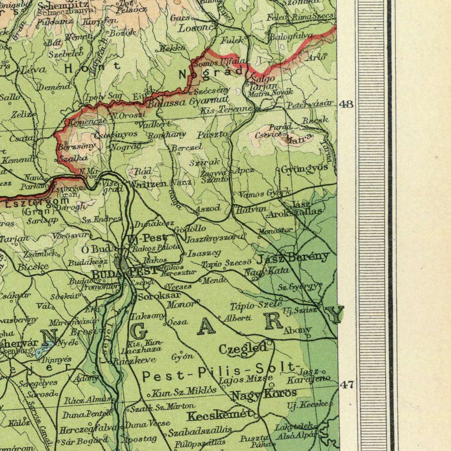 An inset of the Vienna region, rendered at the finely judged scale of 1:150,000, offers a concentrated study of the capital’s geography. The Danube’s channels, islands, and engineered courses shape the city’s setting; the Vienna Woods rise to the west, while the open Marchfeld plain unfolds to the east. Surrounding towns and approaches are plotted with enough granularity to situate Vienna within its metropolitan and provincial context, illuminating the routes that bind it to Linz, Graz, and the wider Danube world. In this union of overview and close-up, the map becomes both an historical document of Central Europe’s reshaping and a collector’s piece that marries exacting craft with enduring elegance.