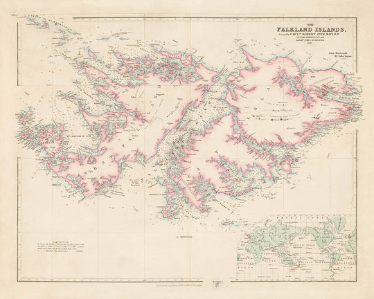 Incorporando tanto arte como precisión científica, este mapa es una celebración de la dedicación de Arrowsmith a su oficio. Se erige como una pieza notable de la historia, invitando a los espectadores a explorar los intrincados detalles y sumergirse en el rico tapiz de las Islas Malvinas. Ya sea que sea un entusiasta de la cartografía o un amante de la historia, este mapa ofrece una oportunidad única para poseer una parte del pasado, bellamente preservada a través de los ojos de uno de los grandes cartógrafos de la historia.