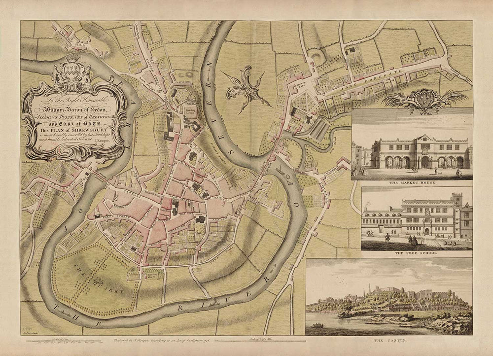 En el siglo XVIII, Shrewsbury era una importante ciudad comercial y ocupaba una posición estratégica cerca de la frontera entre Gales e Inglaterra. Era el lugar donde paraban a menudo las diligencias que viajaban de Londres a Holyhead (el puerto de Holyhead era donde se podía coger un barco a Irlanda). Como puede verse en el mapa, la ciudad se encuentra entre el Puente de Gales al Oeste y el Puente de Inglaterra al Este (conocido como el Puente de Piedra).