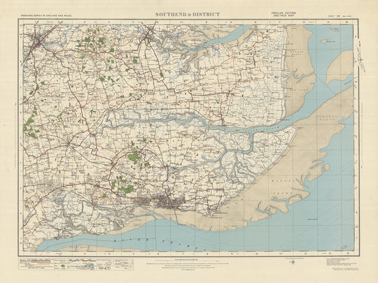 Southend & District, ubicado en el histórico condado de Essex, es un punto destacado de este mapa. Situada a lo largo de la pintoresca costa del estuario del Támesis, Southend-on-Sea, la ciudad principal del distrito, es famosa por su vibrante ambiente de balneario. La inclusión de Southend & District en el mapa le permite rastrear el desarrollo y los cambios en este popular destino a lo largo del tiempo.