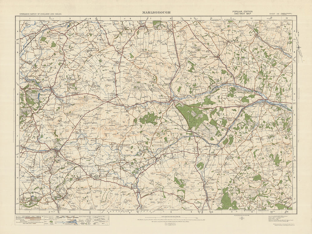 Este mapa de Old Ordnance Survey, hoja 112 - Marlborough, 1925, es una pieza fascinante de la historia cartográfica que ofrece una visión única de Inglaterra y Gales a principios del siglo XX. El mapa muestra los pueblos, ciudades y características interesantes de Marlborough, Calne, Devizes, Hungerford, Lambourn y el área de excepcional belleza natural (AONB) de North Wessex Downs.