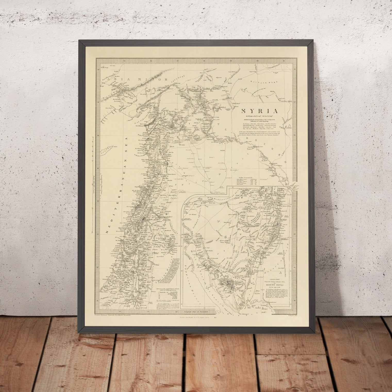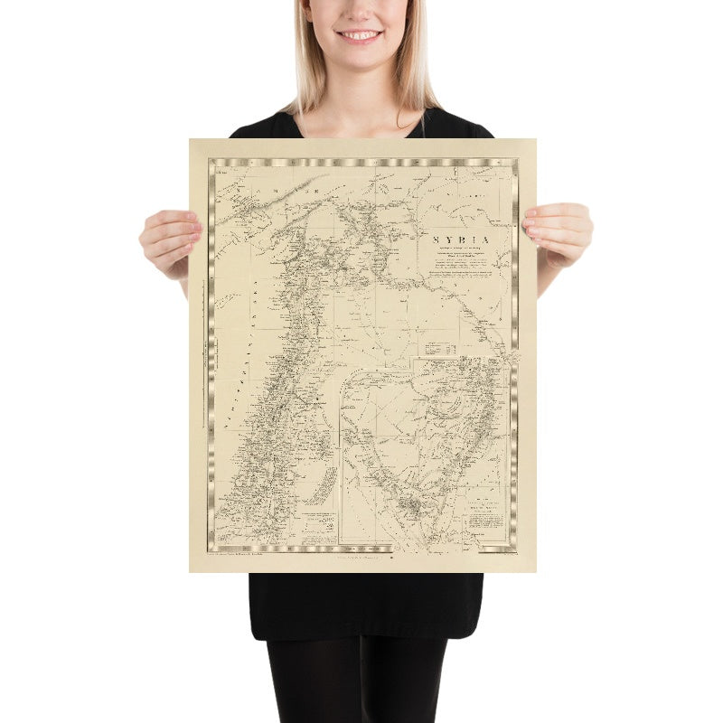 Rare Old Map of Syria, 1843: Damascus, Aleppo, Jerusalem, Jordan R., Sinai inset