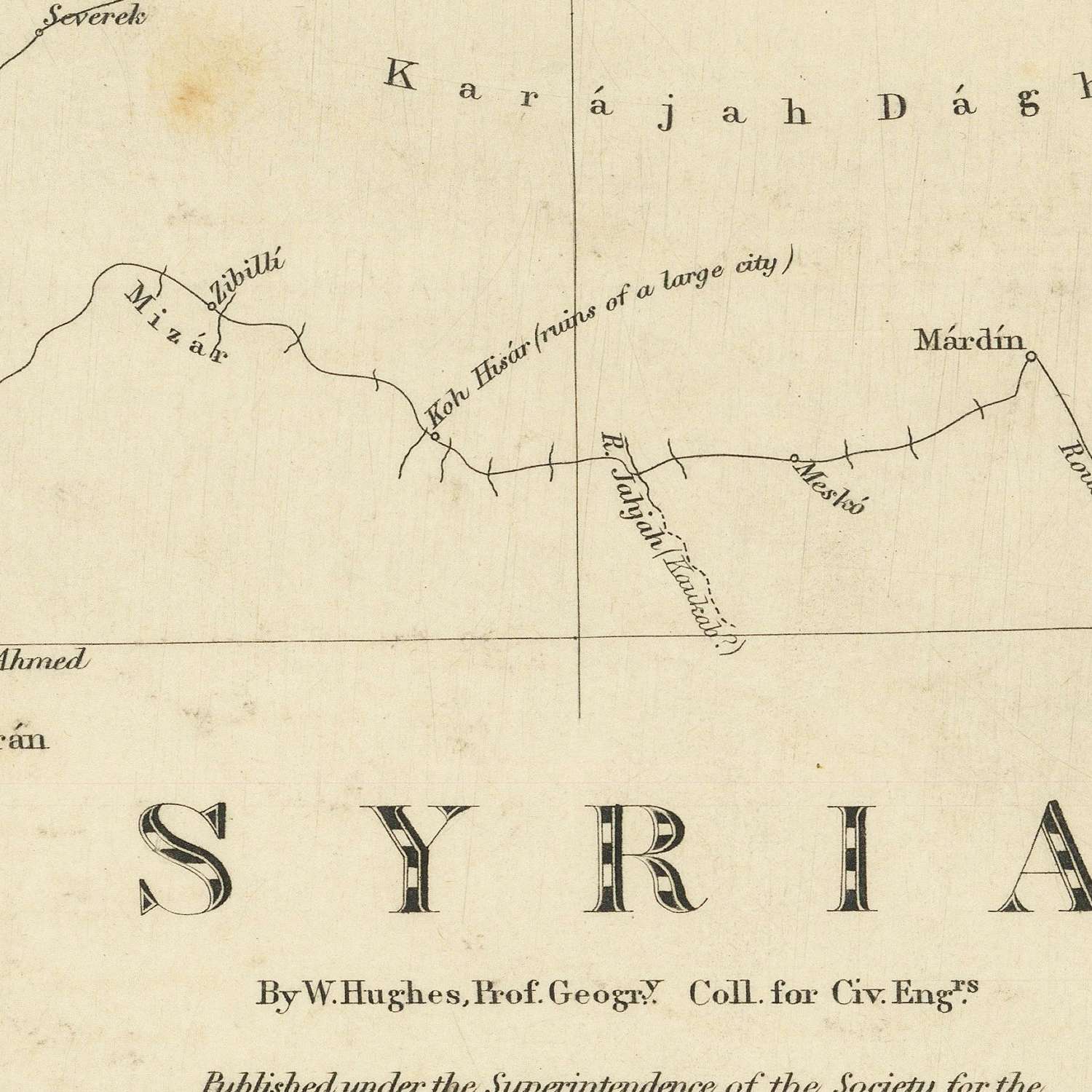 Conceived under the SDUK’s reformist banner, the map fuses rigorous scholarship with clarity. Founded to widen access to dependable knowledge, the Society distilled travel narratives, consular intelligence, missionary geography, and Ottoman descriptions into authoritative, affordable references. Issued just after the upheavals of the 1830s and on the threshold of Tanzimat reforms, this sheet fixes a region whose administration and allegiances were shifting, yet it conveys that complexity with sober organization. Its precise linework and neatly lettered toponyms reflect the SDUK’s commitment to accuracy, while the ornamental cartouche nods to the classical aura the Levant held for the era’s learned public.