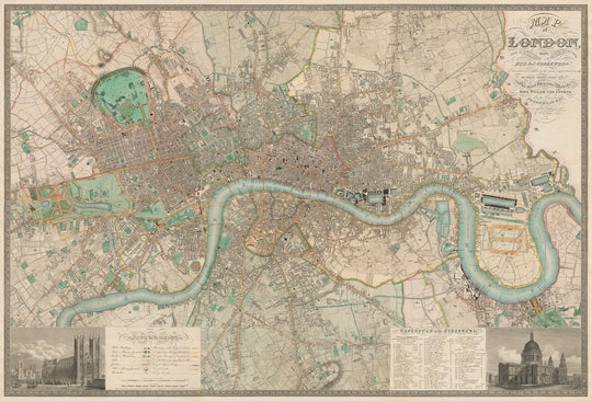 Imprimé à l'origine en 6 feuilles, c'est probablement le plus beau de tous les anciens plans de Londres. Dans les années 1830, de nombreux monuments célèbres de Londres existent déjà, mais certains, comme le Royal Albert Hall et tous les musées de South Kensington, ne seront construits qu'à l'époque victorienne, quelques décennies plus tard.