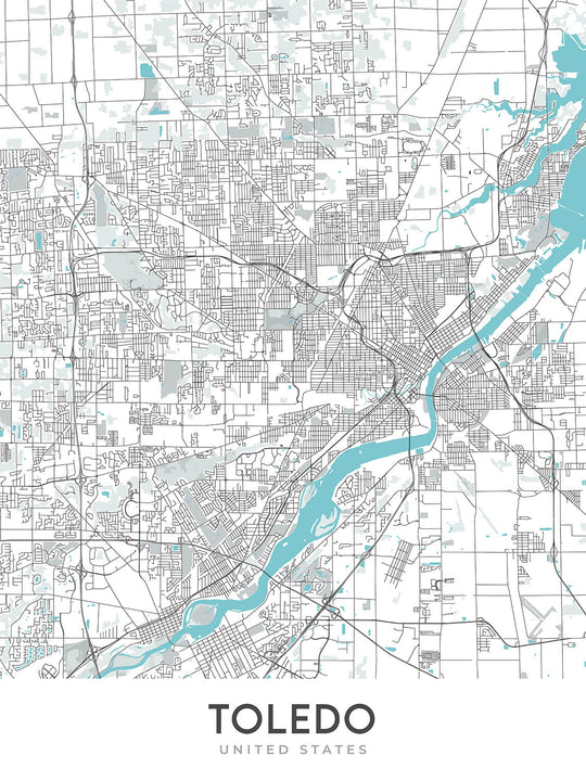 Cette carte de Toledo, Ohio, est un plan de rue moderne et détaillé, parfait pour tous ceux qui souhaitent explorer cette ville animée. La carte couvre une vaste zone de Tolède, y compris le centre-ville, le Old West End, le North End, le South End, l'East Side et le West Side. Il comprend également de nombreuses routes, routes et autoroutes principales de la ville, notamment la I-75, la I-80/90 (Ohio Turnpike), la I-280, la I-475, l'US-20, l'US-23, l'US-24, US-25, US-42 et US-68.