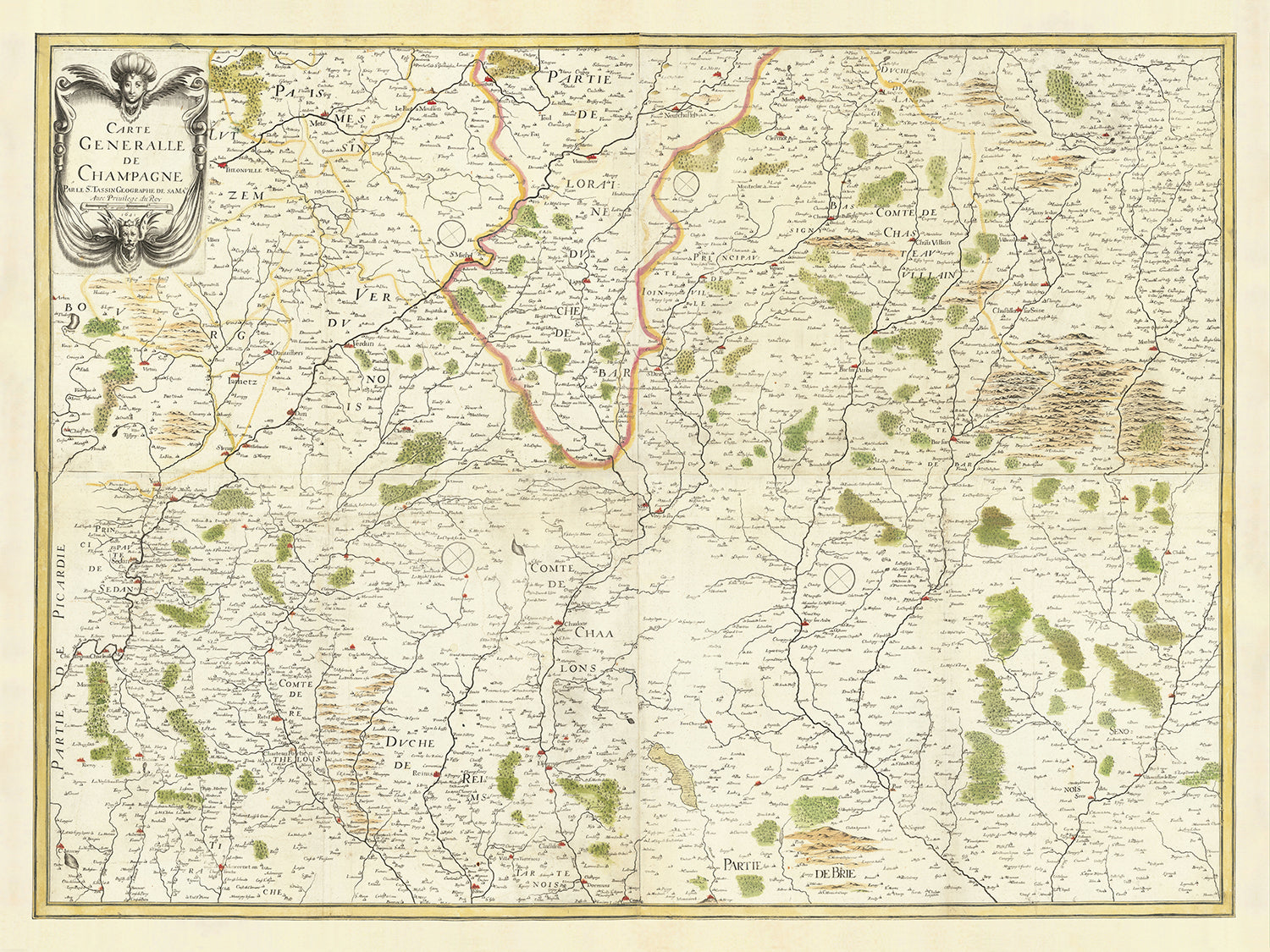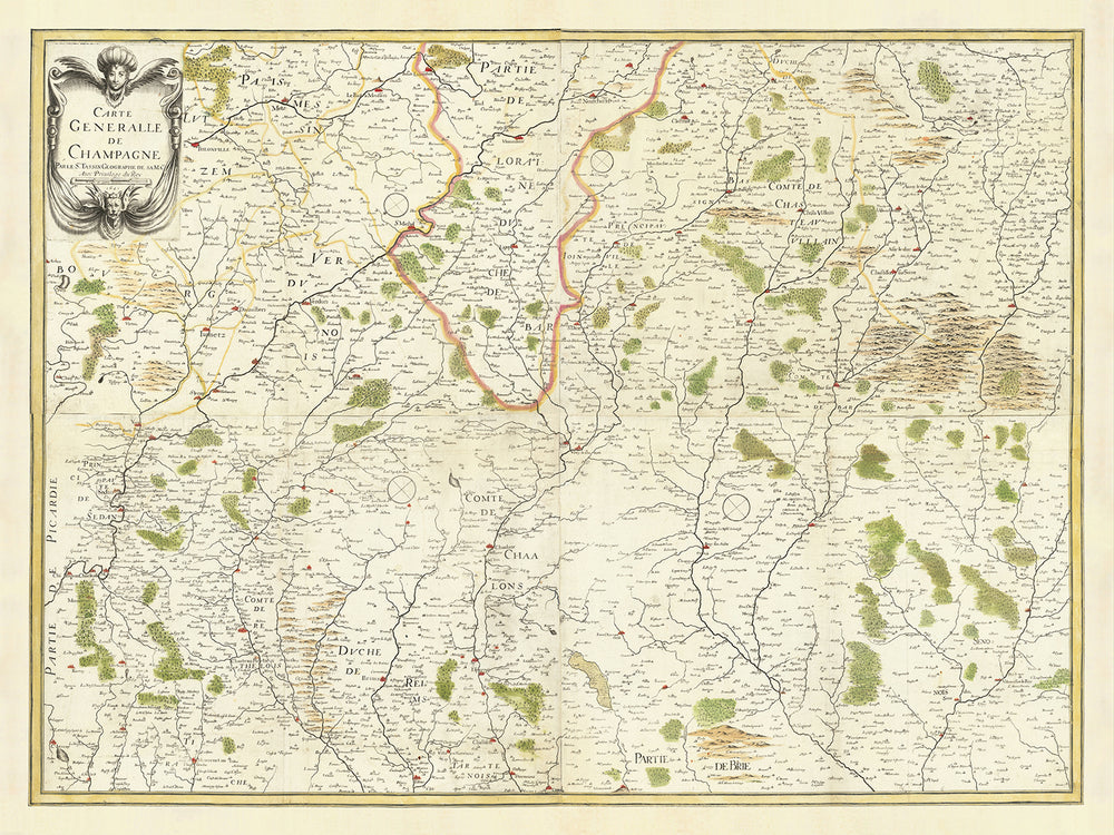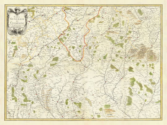 Ancienne carte de la Champagne, France par Christopher Tassin, 1641 : Reims, Épernay, Troyes, Châlons-en-Champagne, Vitry-le-François