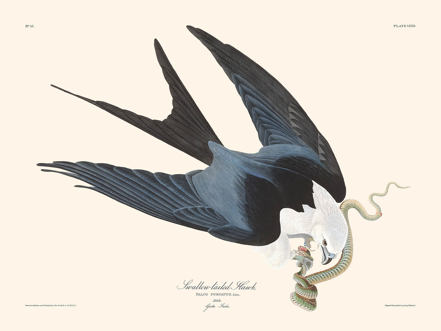 Faucon à queue d'hirondelle par John James Audubon, 1827