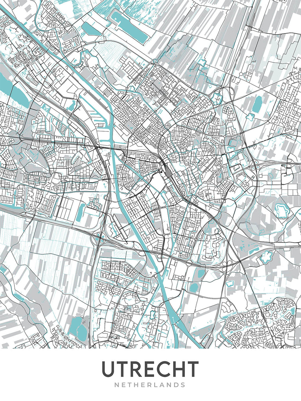 Cette carte d'Utrecht est une œuvre d'art magnifique et informative qui fera un excellent ajout à n'importe quelle maison ou bureau. C'est une manière idéale de célébrer la riche histoire et la culture de la ville, et cela suscitera certainement des conversations pour les années à venir.