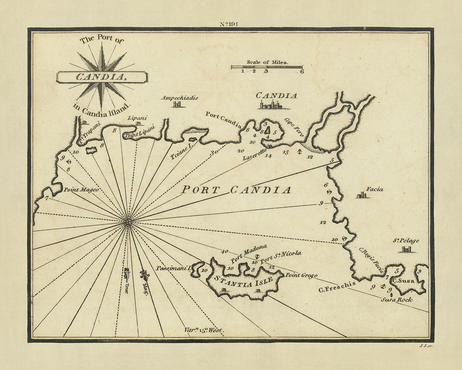 Le port de Candia, île de Candia : un joyau cartographique de la collection nautique de William Heather de 1802